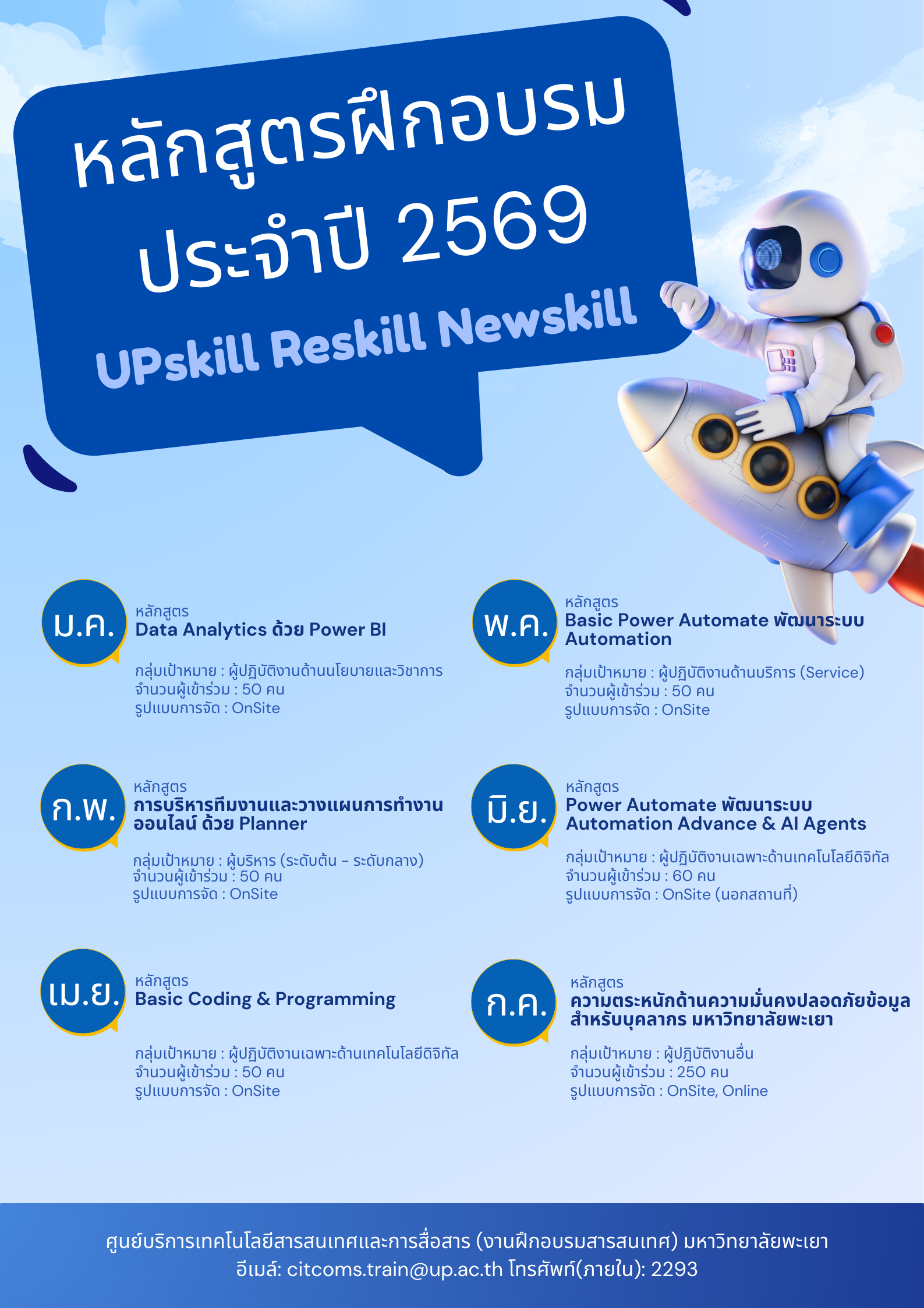 แผนจัดหลักสูตรอบรมพัฒนาทักษะดิจิทัล ประจำปี พ.ศ. 2569 (UP Digital Skills Training 2026) สำหรับบุคลากร มหาวิทยาลัยพะเยา